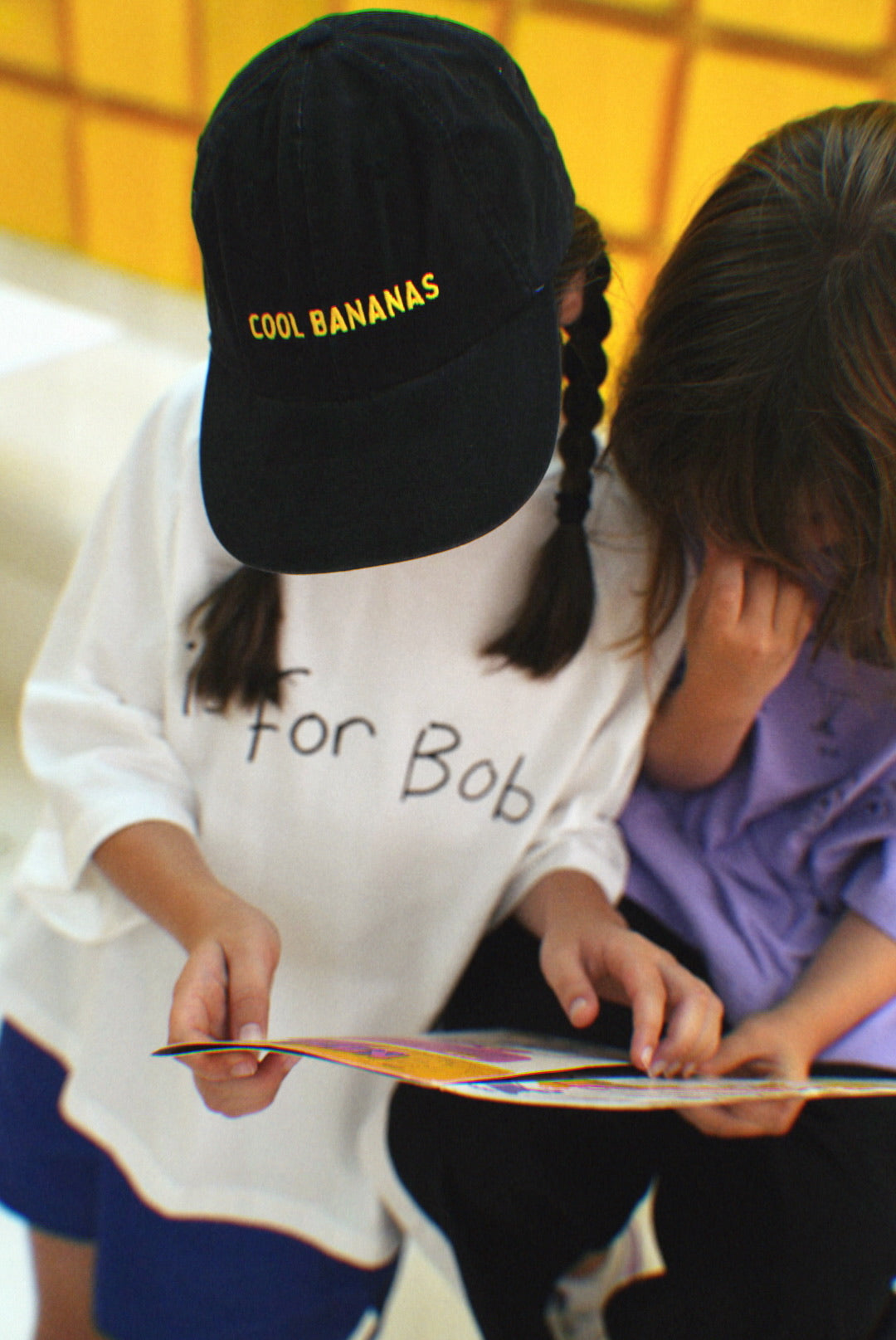 - Washed black cap with 'COOL BANANAS' embroidered in yellow