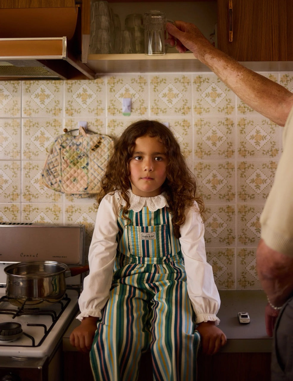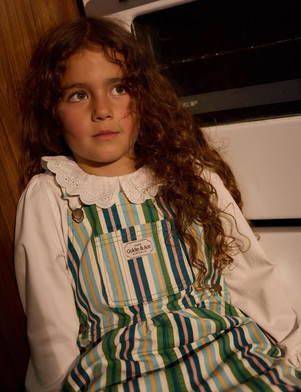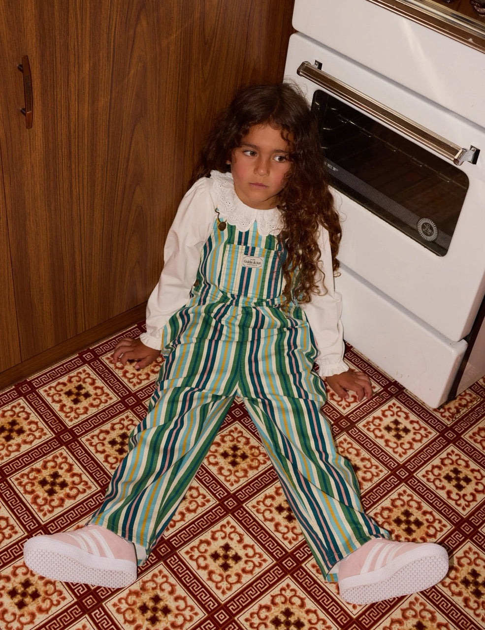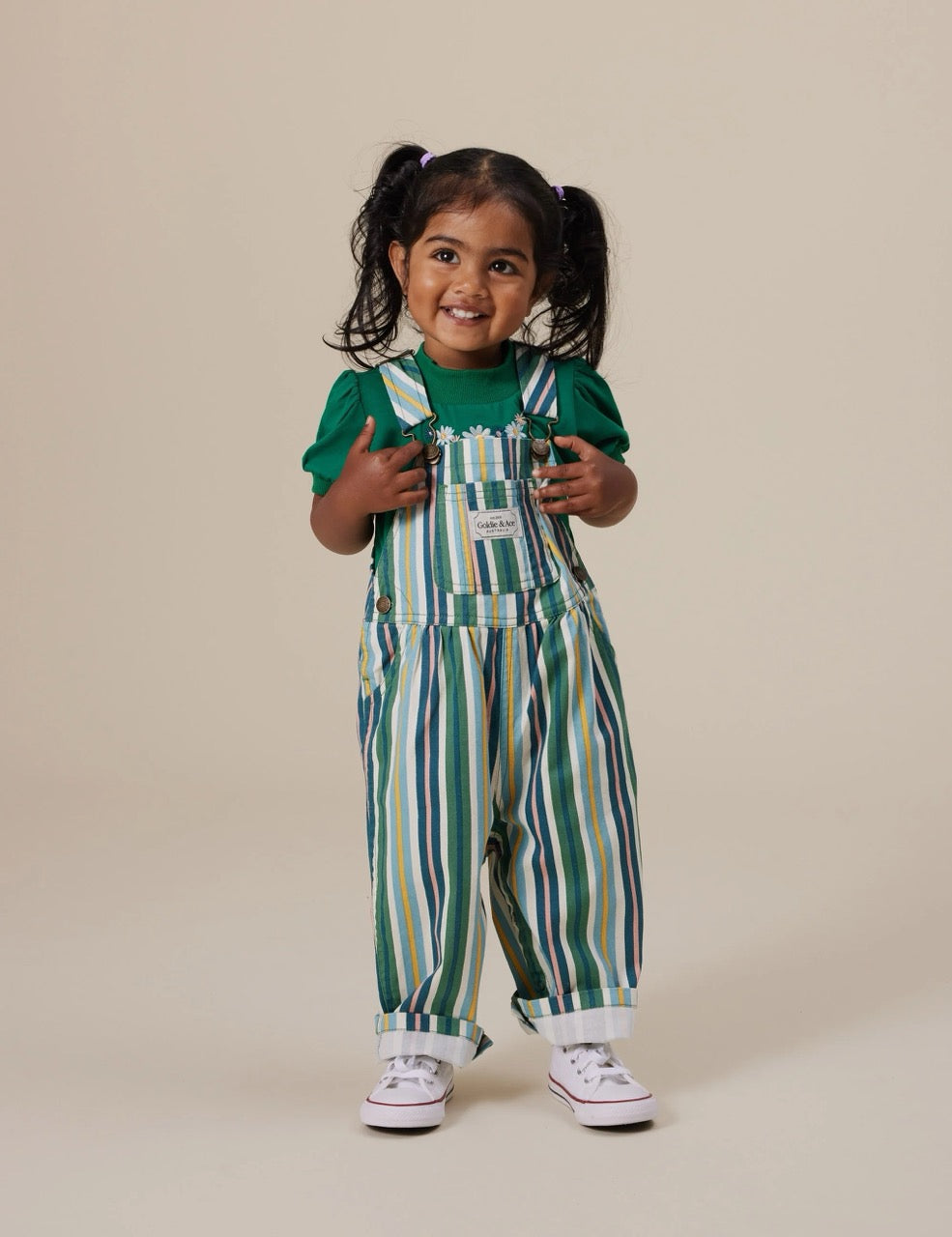 Charming cotton denim overalls in a classic stripe designed by our in house team.