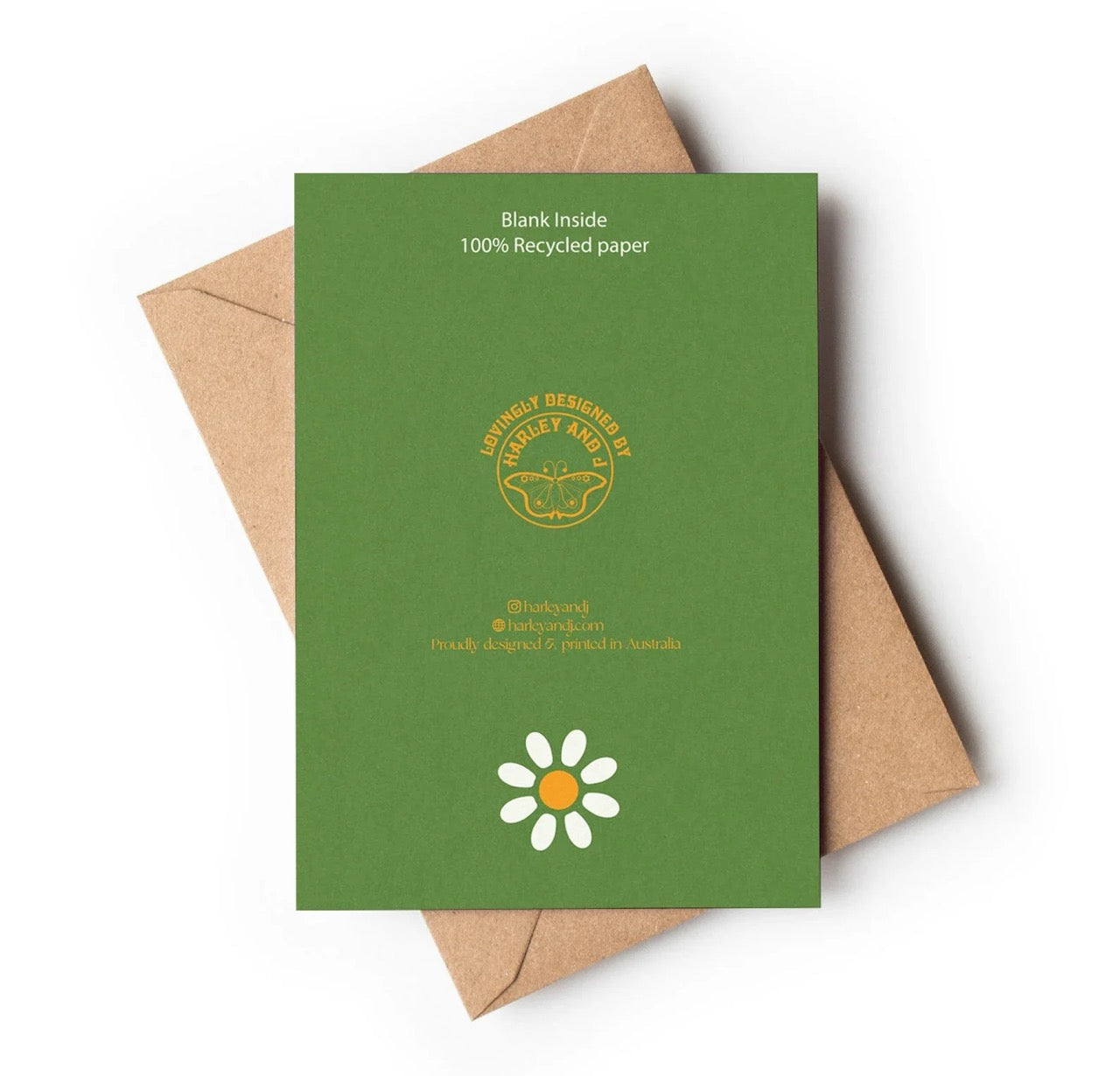 All cards at Harley and J are designed and printed in Australia on 100% recycled paper, each card comes with a 100% recycled kraft envelope and in its own clear cello bag.