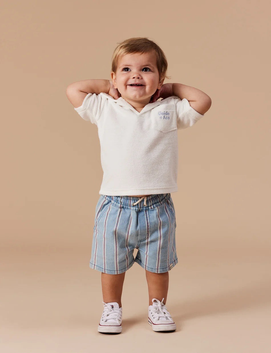 Noah Classic Stripe Denim Shorts - Red/White Stripe