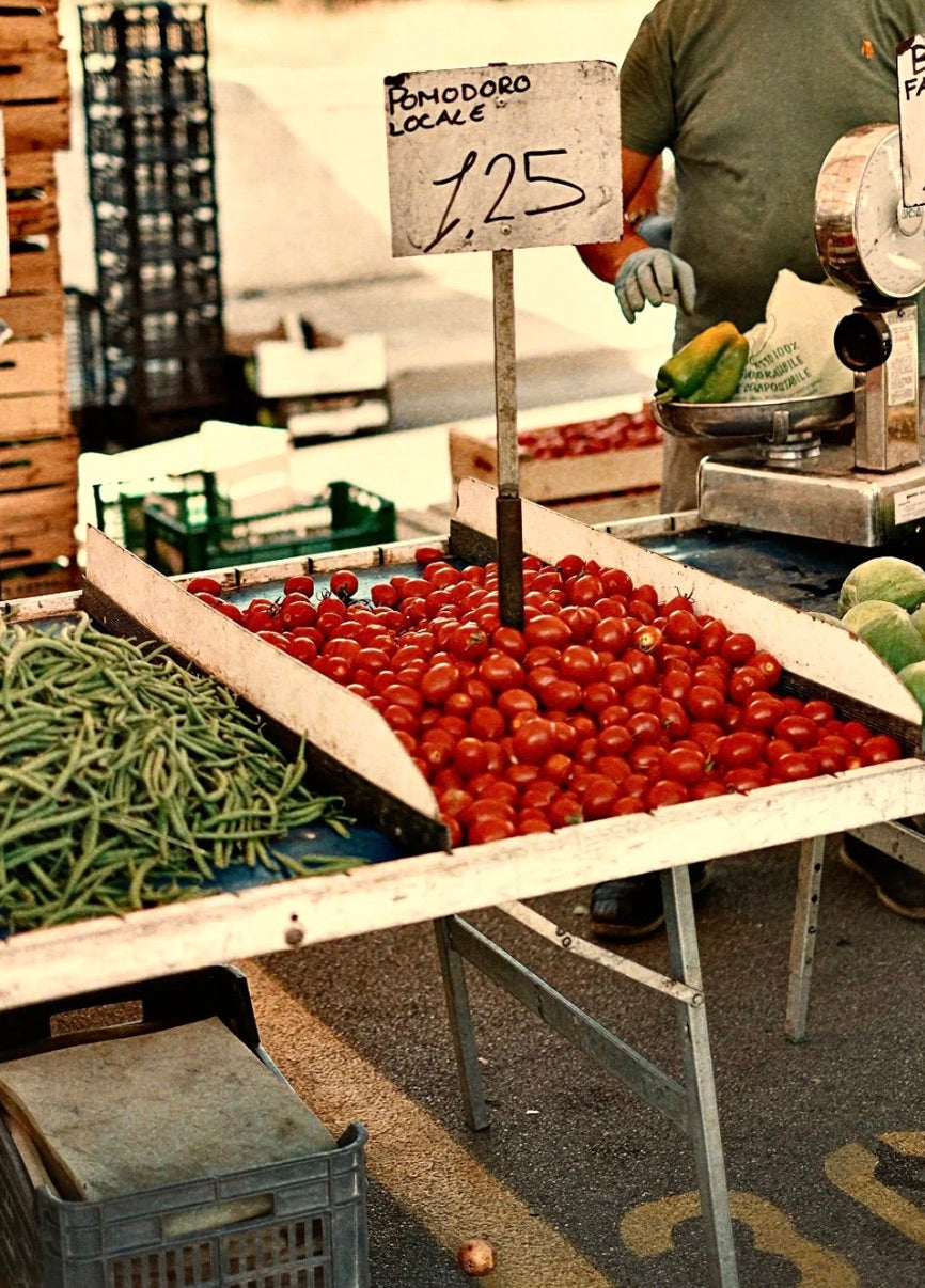 Harvested Mediterranean fruits picked and hauled to market. A brush of hand against each leafy vine extends herbaceous notes of true mossy green essences, rich red pomodoro tomato, cradled by citrus.
