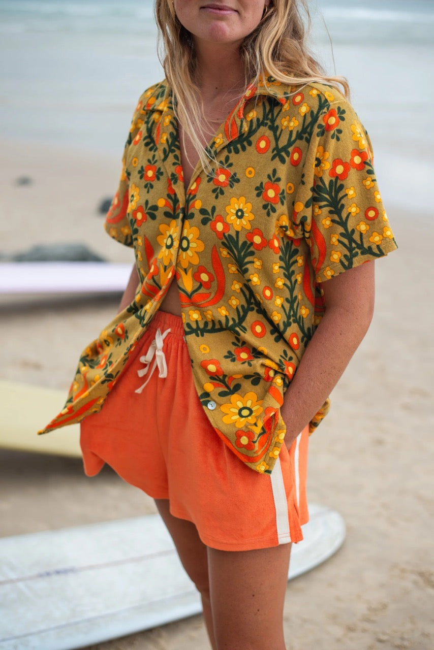 Introducing our best-selling Terry Towelling Shorts in vibrant Coral, perfect for slipping into after a day in the ocean!