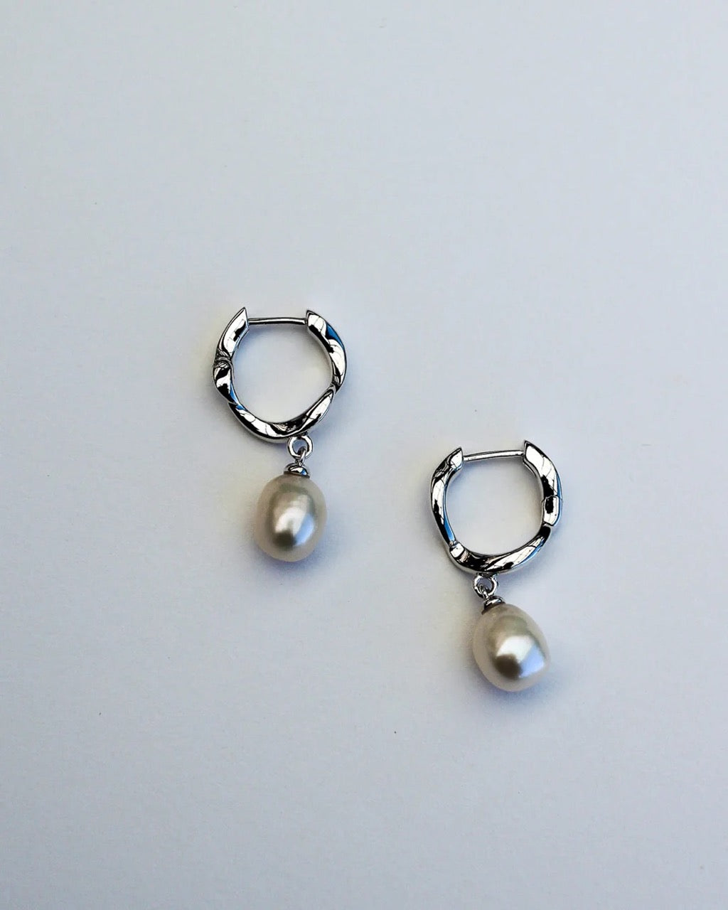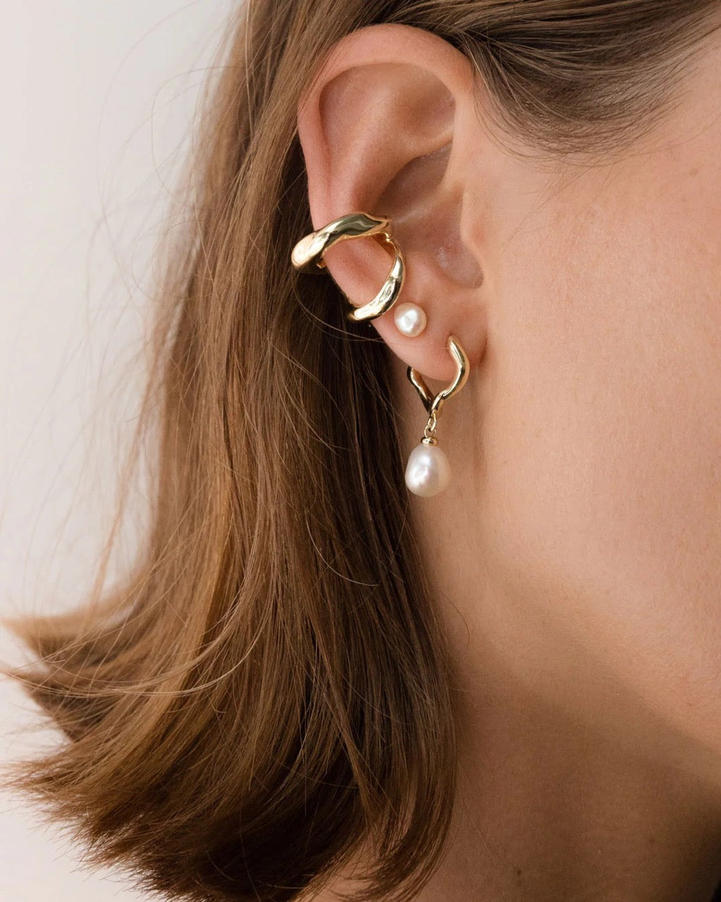 The Wave Huggies with Freshwater Pearlsare a modern minimalist jewellery design with a fluid form for effortless styling and adorned with a freshwater pearl for a feminine edge.
