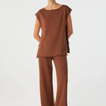 A lightweight, relaxed-fit pant designed for comfort and soft structure. The Poppy Pant features subtle side pleats and an elastic waistband for effortless wear. Knitted in a breathable linen–cotton blend that moves naturally with the body.