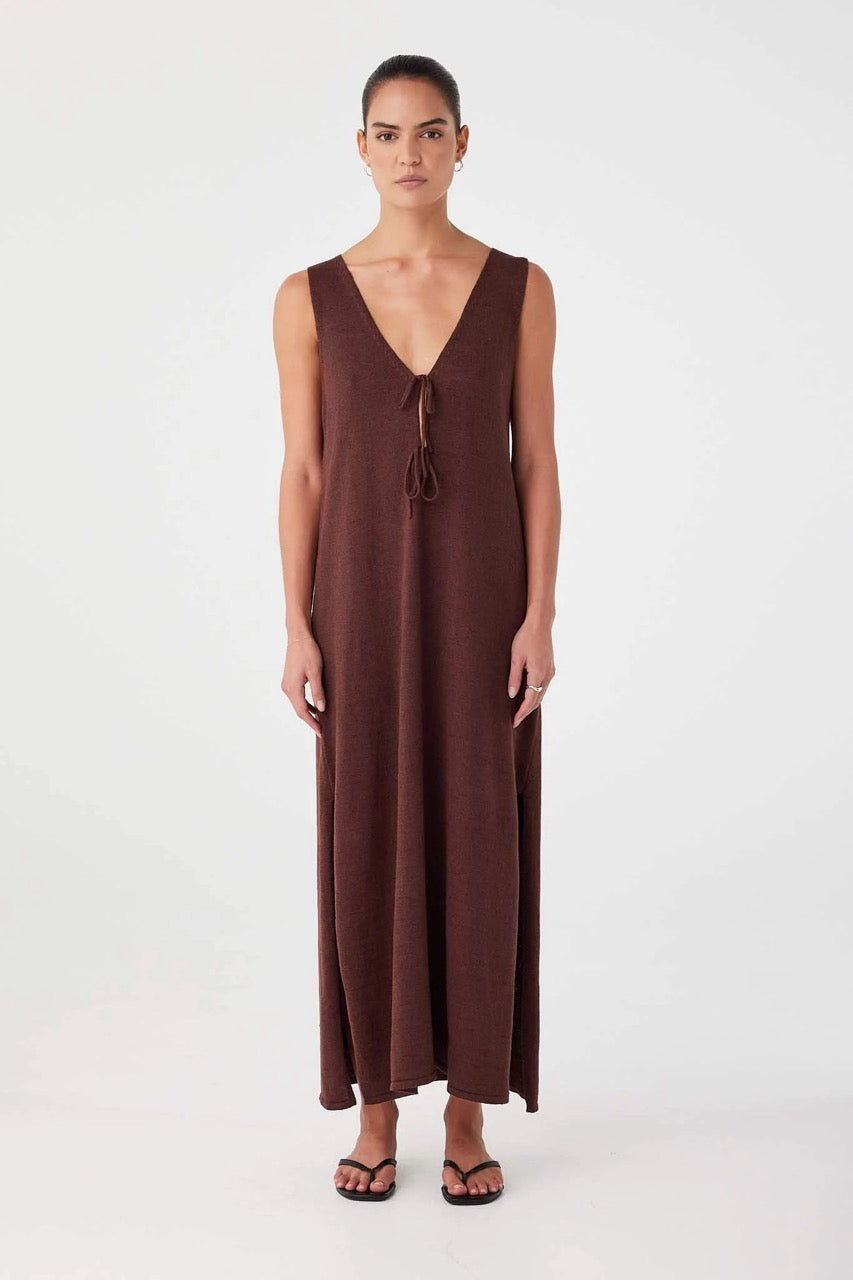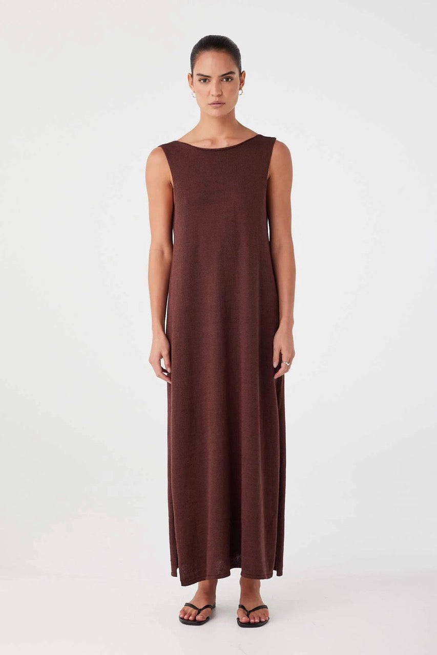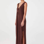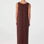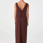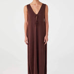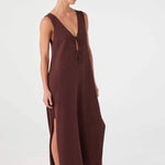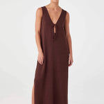 A relaxed-fit maxi dress designed to be worn two ways. Features a soft V neckline, adjustable tie detail, and deep side splits. Crafted in a lightweight, breathable linen–cotton blend.