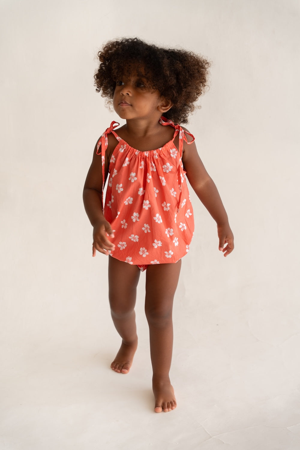 A playful everyday favourite, the Lottie Romper arrives in our joyful Summer Floral print. Crafted from breathable 100% cotton poplin, it’s designed for comfort with gentle gathering through the body and adjustable tie straps that grow with her. A relaxed silhouette made for movement, sunshine, and the carefree pace of warm-weather days. Loved for its ease, this timeless piece is just as sweet worn on its own as it is layered through the seasons.