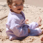 The Kimono Romper is crafted from soft, breathable cotton muslin gauze — designed for all-day comfort and effortless dressing. The sweet wrap-tie front means nothing needs to go over your baby’s head, with hidden press-studs at the crotch for quick, fuss-free changes.