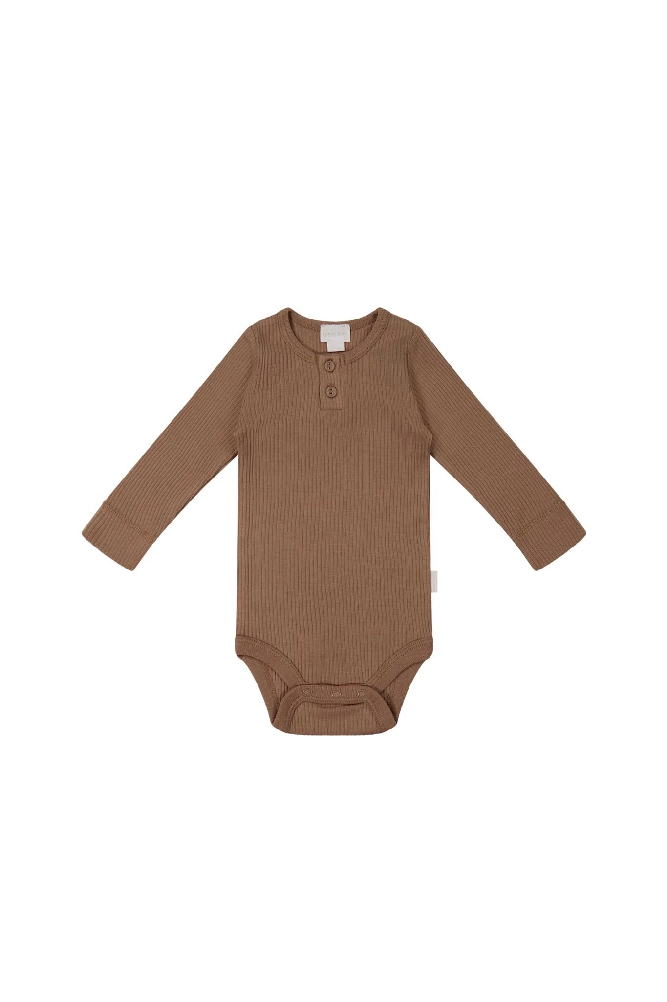 Organic Cotton Modal Long Sleeve Bodysuit - Hojicha