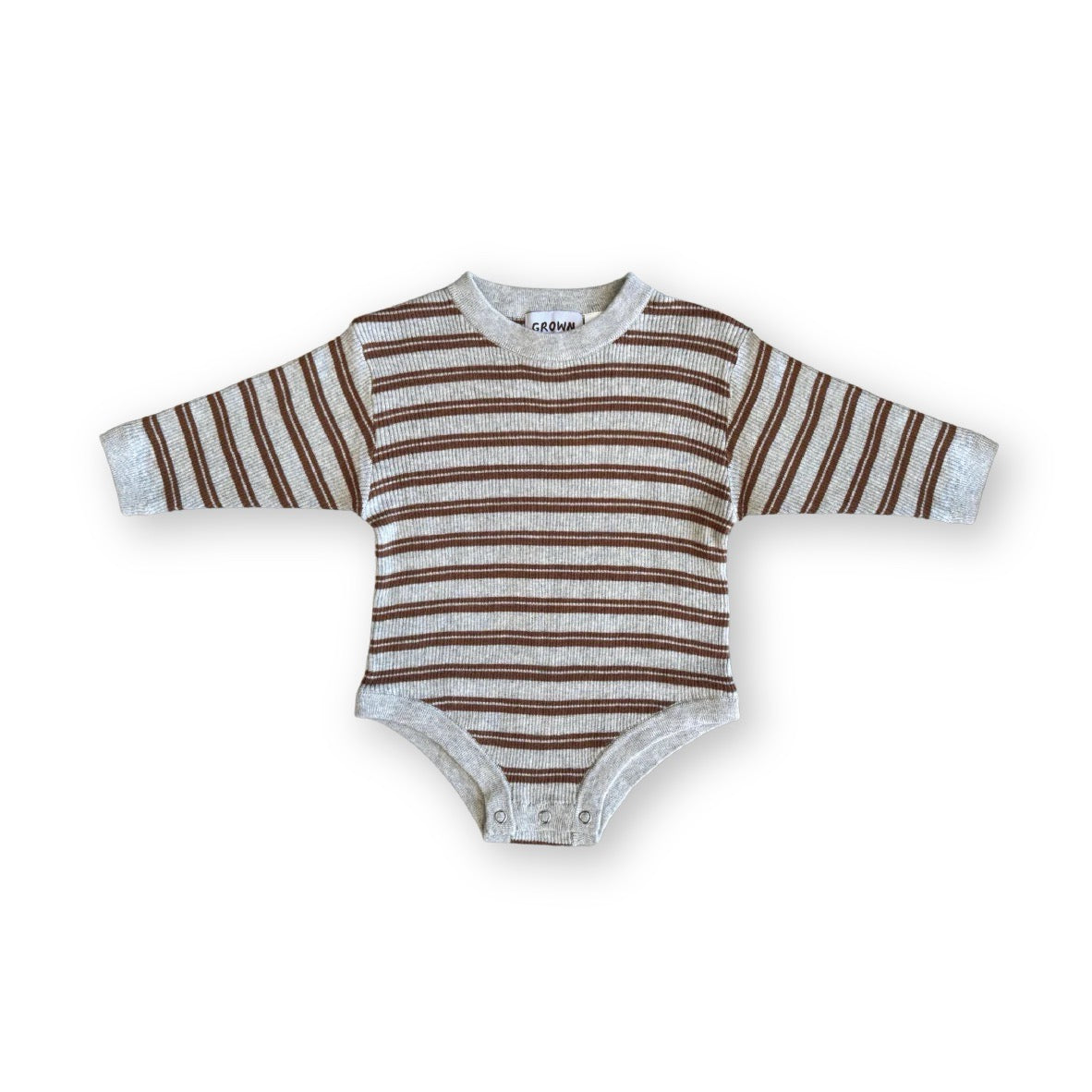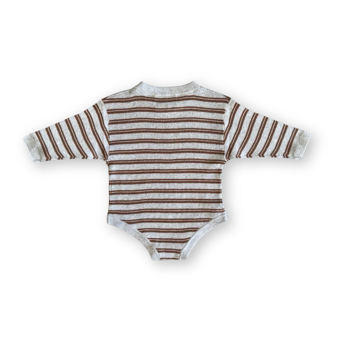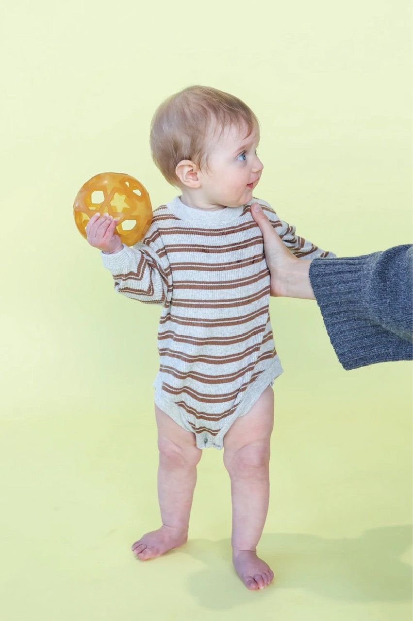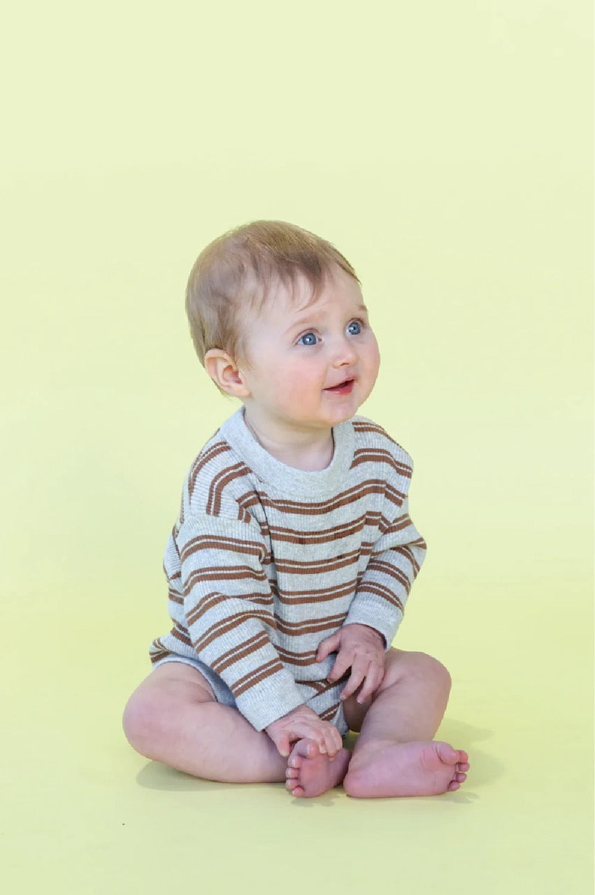 Organic Ribbed Stripe Knit Romper - Grey Marle/Brown