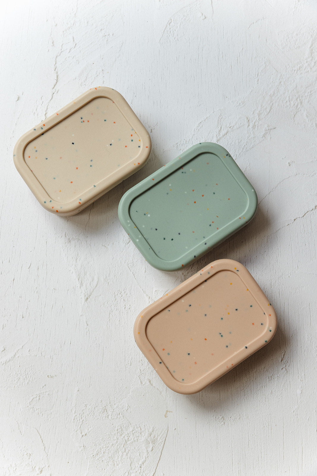 The cutest addition to your outings is our Little Love of Mine speckle lunch boxes.