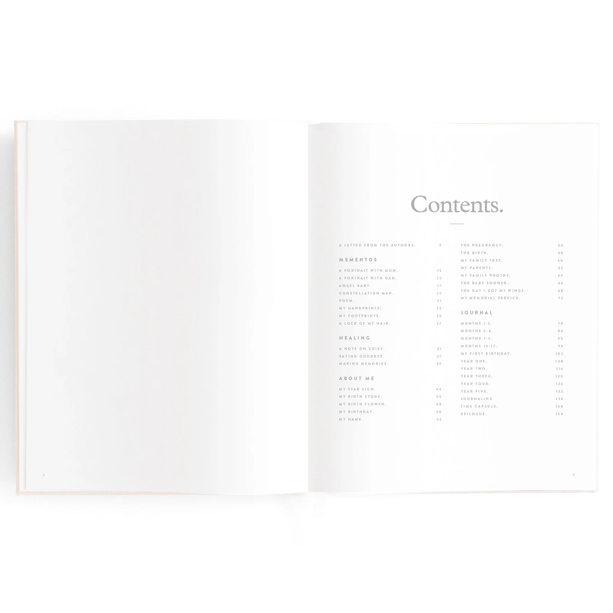 This journal has four parts - Mementos, Healing, About Me and Journal. It's designed to honour their little one's memory and also be guided through their grief. Also available in a beautiful keepsake box where you can place personal items such as a lock of hair, photos, hospital tags and cot cards or pressed flowers.