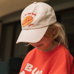 The Hot Dog Cap is a 6 panel dad cap made from 100% cotton. The embroidery is inspired by our love of hot dogs, bringing back memories from hot dog carts in NYC!