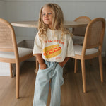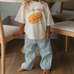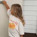 The Hot Dog Tee is made from 95% cotton jersey, 5% spandex with an incredibly soft hand feel. The print is inspired by our love of hot dogs, bringing back memories from hot dog carts in NYC!
