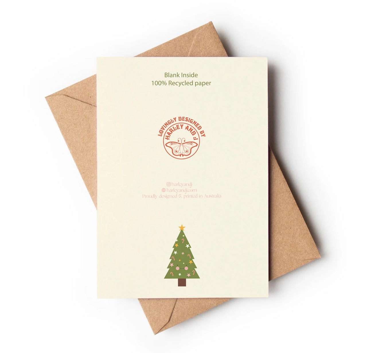 Celebrate the festive season with our modern and fun Christmas card collection, designed to bring a fresh twist to holiday cheer. Each card is printed on high-quality recycled card stock, giving it a beautiful, tactile finish that’s both eco-friendly and stylish. Paired with a rustic kraft envelope, these cards are the perfect balance of contemporary design and timeless charm. Whether you’re sending a heartfelt message or a cheeky holiday greeting, this range is made to spread joy while being kind to the planet.