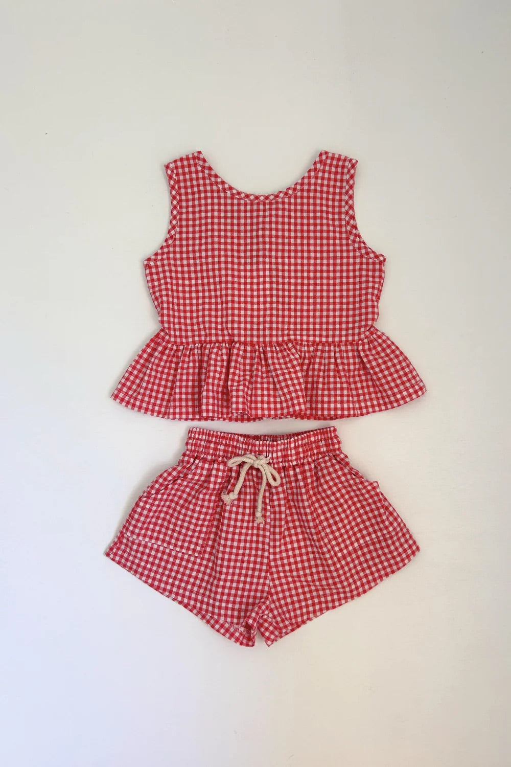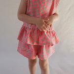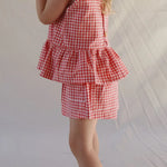 The red gingham makes for the perfect Christmas outfit or pair with our Checky Pocket Shorts for the sweetest matching set.