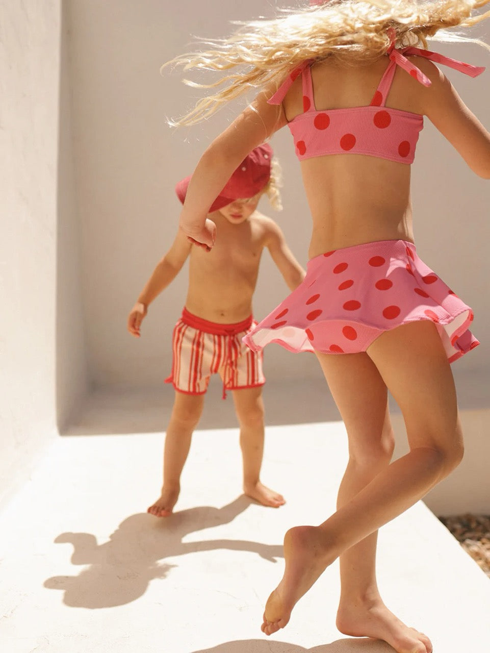 Knotted shoulder ties keep it adjustable as they grow and sturdy ribbed texture ready for action