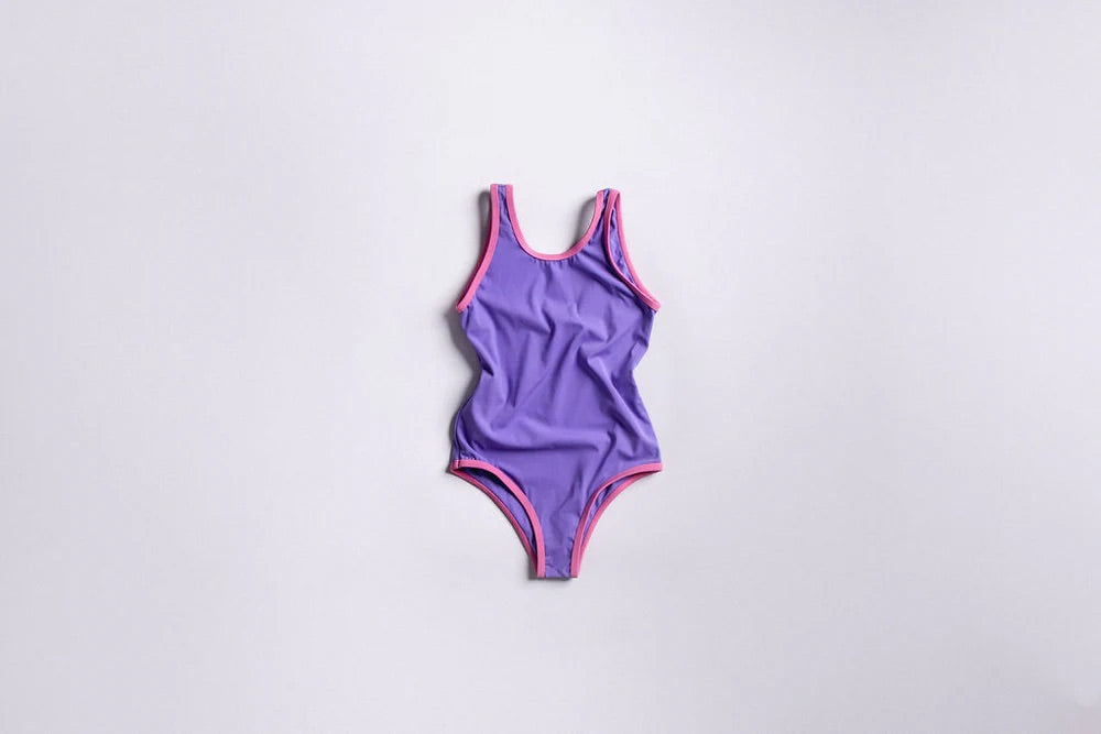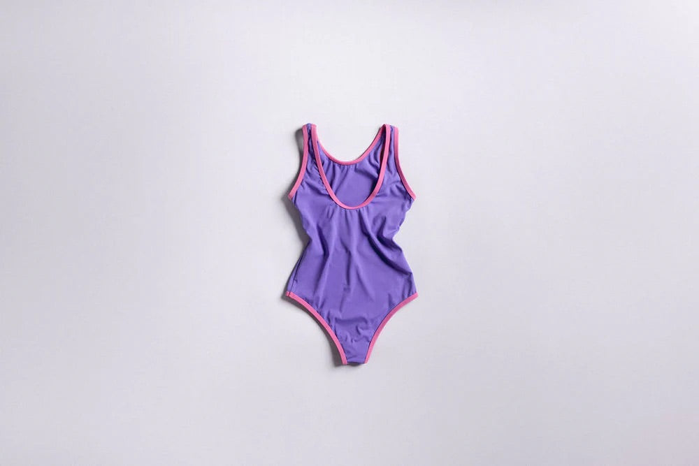 The Stevie — a customer favourite! This timeless piece comes in many contemporary colour options and features a sleeveless design with colourful contrast binding — a nod to the 80’s, whom we love so much. It is complemented by a delicately scooped neckline and back, and is meticulously crafted and self-lined in high-quality recycled nylon certified by OEKO-TEX. It’s also versatile enough to be worn as a bodysuit for your mini minimalist.