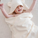 Made from a luxuriously thick bamboo and cotton blend * Highly absorbent and moisture-wicking for quick drying * Soft and gentle on sensitive or newborn skin * Features a hood with adorable bear ears * Suitable from newborn stage through to early childhood.