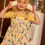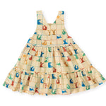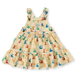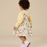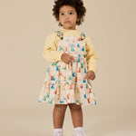 This unruly 'Roo printed pinafore brings the party to the playground. With a tiered skirt perfect for twirling, and adjustable overall-style straps fit for growing up, it’s practical and pre-approved for play.