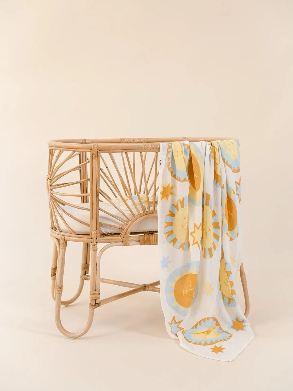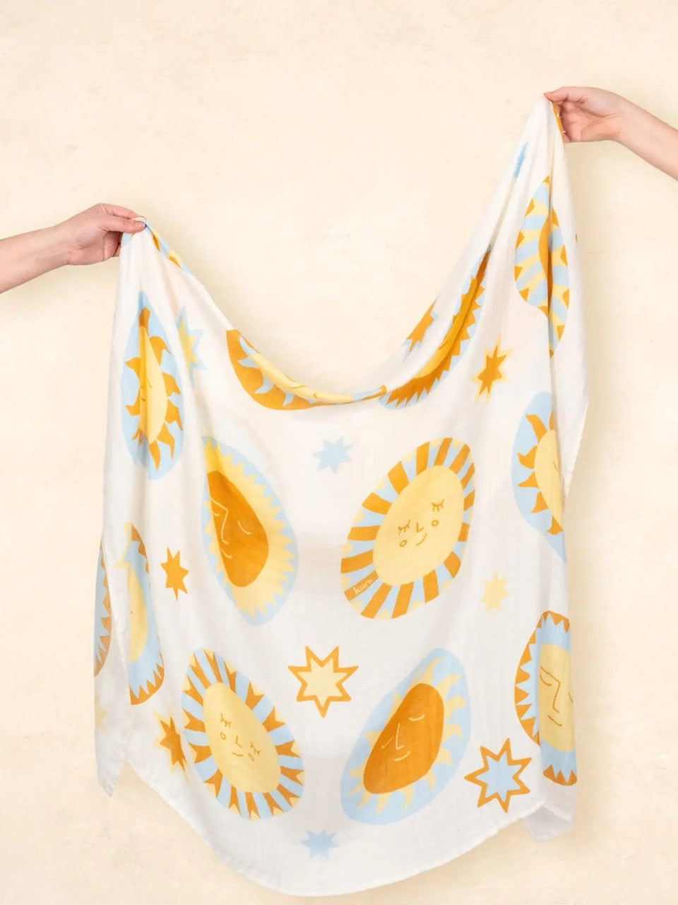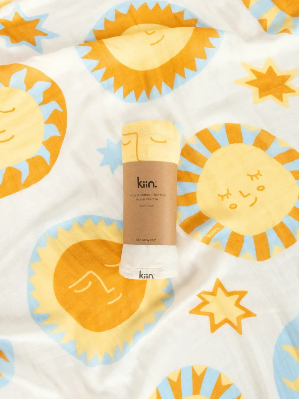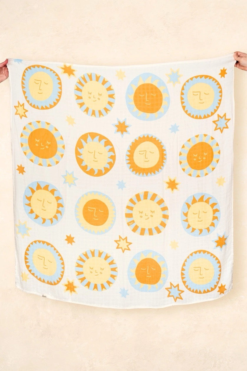 The Kiin Organic Muslin Swaddle is a cornerstone of our collection and one of the very first products we ever released. This beloved swaddle sparked our brand’s growth and continues to be a customer favourite, known for its exceptional softness, versatility, and timeless design. Now available in a limited edition Sunny Day print, this swaddle features a dreamy scattering of sleepy suns and twinkling stars. With soft, sun-warmed tones inspired by summer days, this design is both gender neutral and timeless, making it a beautiful keepsake for every baby. Crafted from a premium blend of organic cotton and bamboo, the lightweight muslin fabric is breathable, buttery-soft, and gentle on delicate newborn skin.