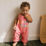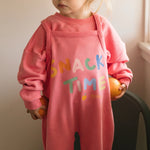 The Snack Time Overalls are made from 100% french terry fleece cotton with a thick yet soft hand feel. The print is inspired by snacks, the one thing your little ones are always asking for!