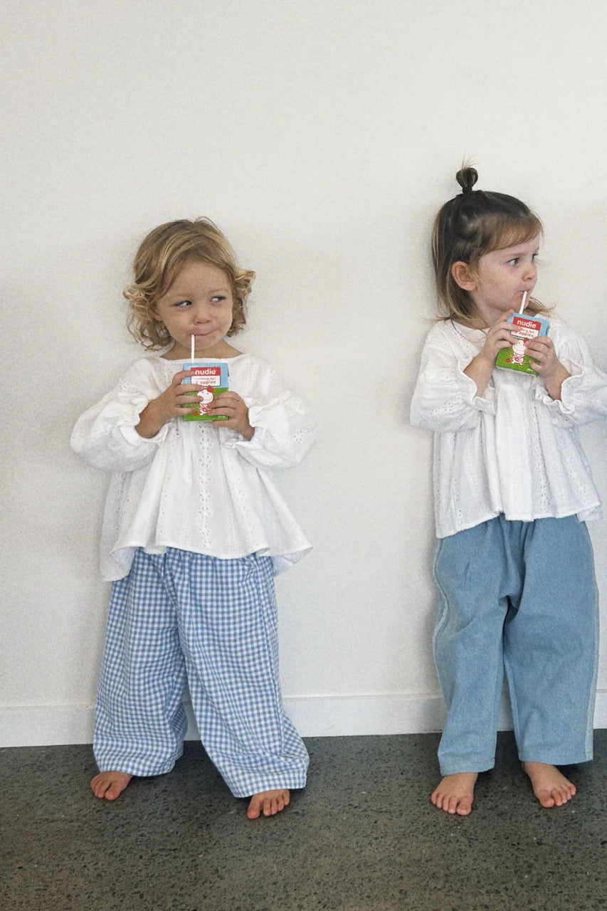Spun from dreamy cotton, our gingham pants feature a relaxed wide-leg fit, drop crotch, elastic waistband, and fun front and back pockets for carrying little treasures.