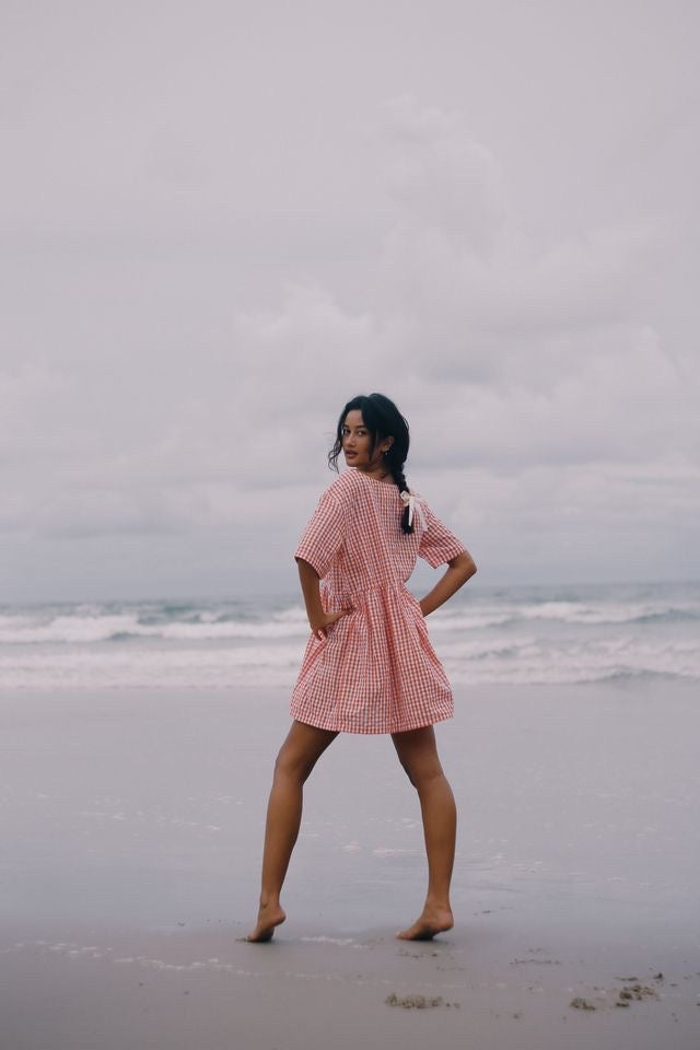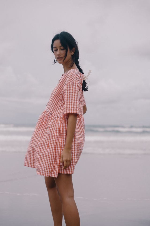 The Darcey Dress is an absolute essential! The Darcey dress has become a cult favourite here at TBR and we know you will love it for more than just one season! A cool and breezy piece is the perfect ‘chuck on’ to get you through those warmer days. Featuring an oversized fit, wide neckline, button-down neckline, babydoll skirt and a flattering wide sleeve. Made from a Cotton Linen Blend in a Starburst Gingham.