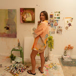 Our Pastel Sea shirt is part of our Artist Series, showcasing Annie Everingham’s hand-painted artwork. Painterly pastels and expressive brushstrokes capture the quiet magic of the seaside, shells, fruits, and tropical orchid motifs brought to life on lightweight organic cotton.