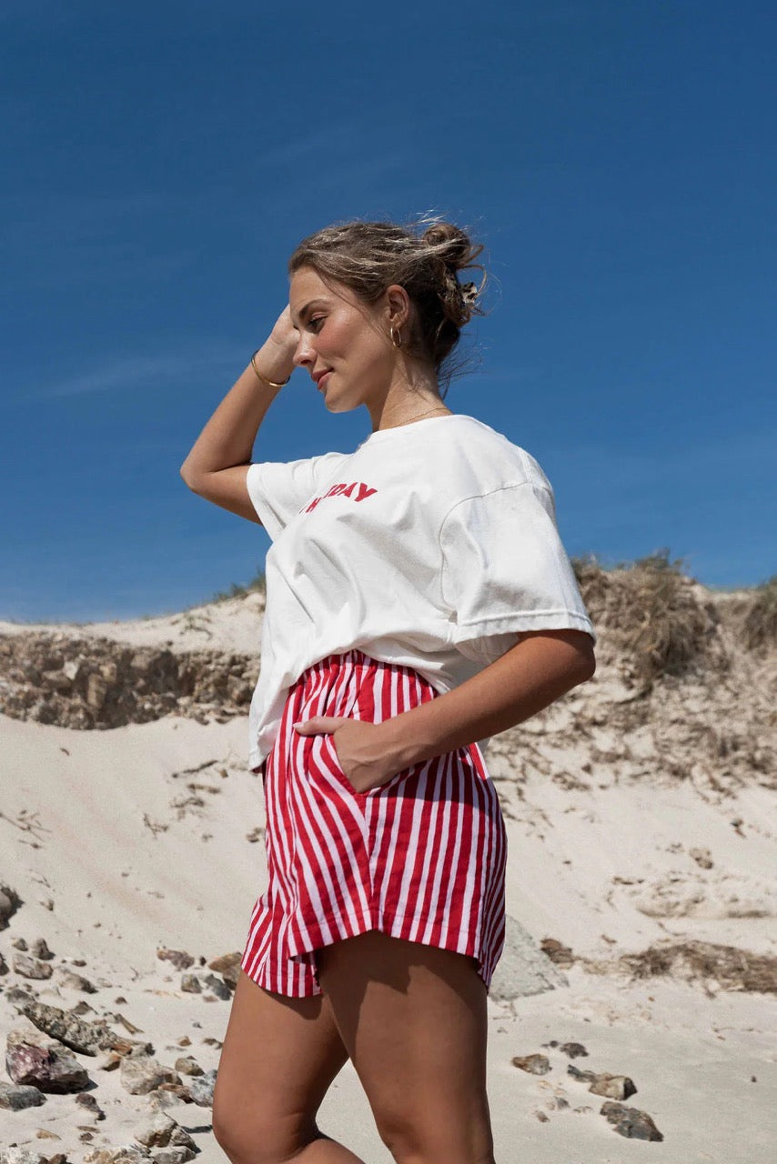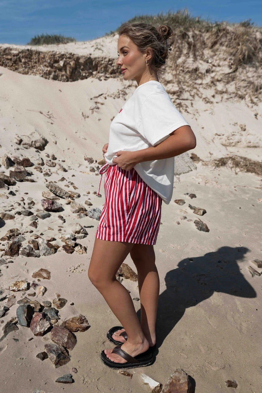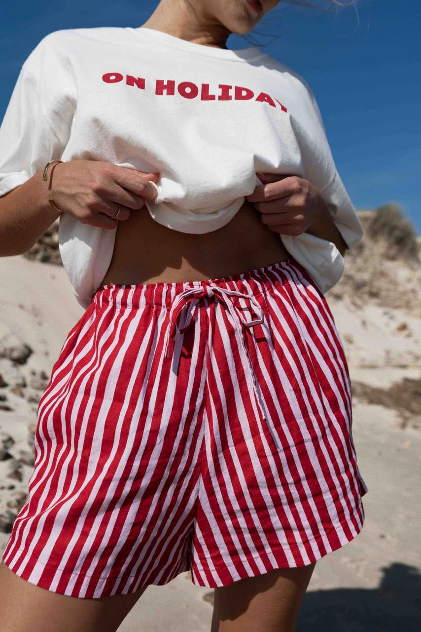 The Gigi Short in our exclusive hand-painted stripe print by SOAN Print House