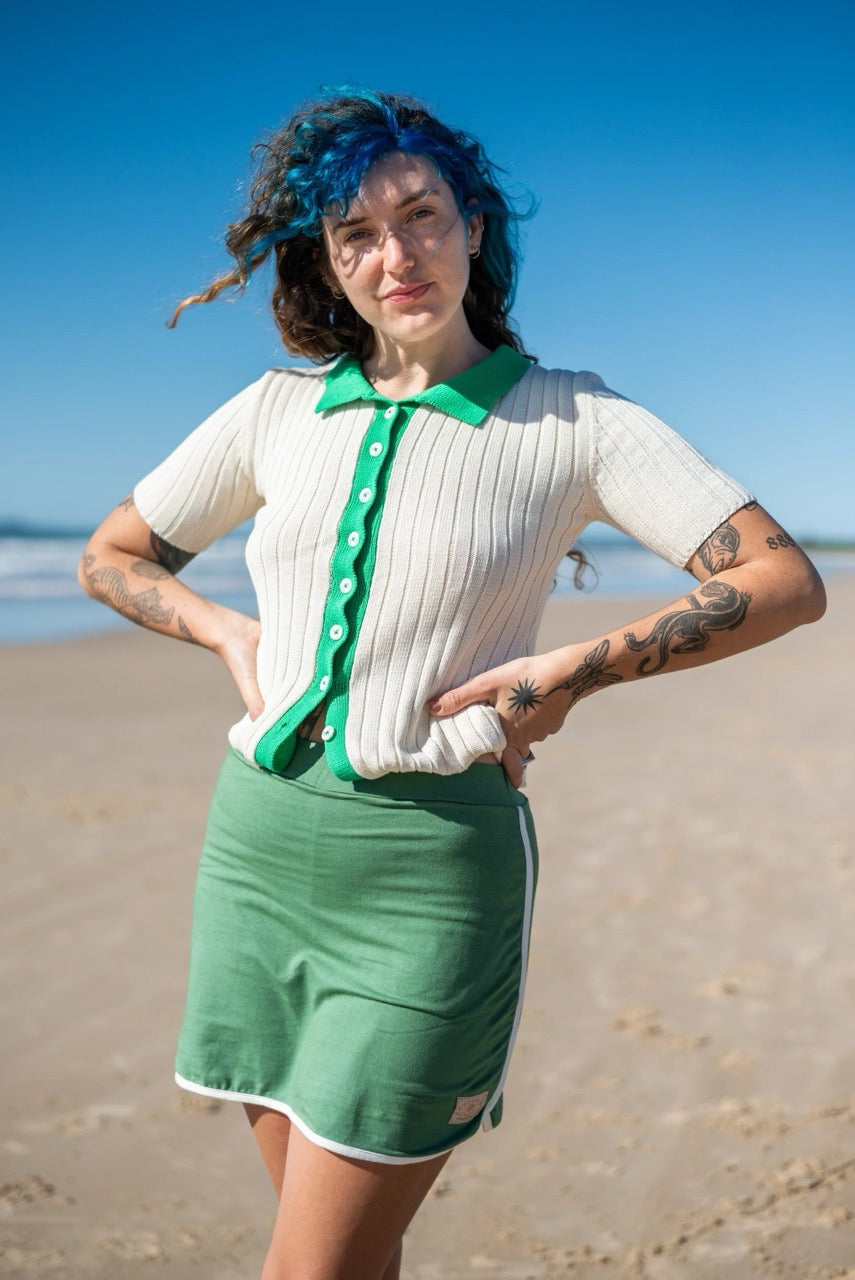 Combining the best of shorts and a skirt, this sporty-inspired piece features built-in shorts crafted entirely from soft bamboo, ensuring your skin can breathe and stay happy. Available in a vibrant green colour, this skirt features the Atmosea embroidered logo, adding a touch of signature style to your active wardrobe. Perfect for on-the-go activities or casual outings, embrace versatility and comfort with our classic Atmosea style.