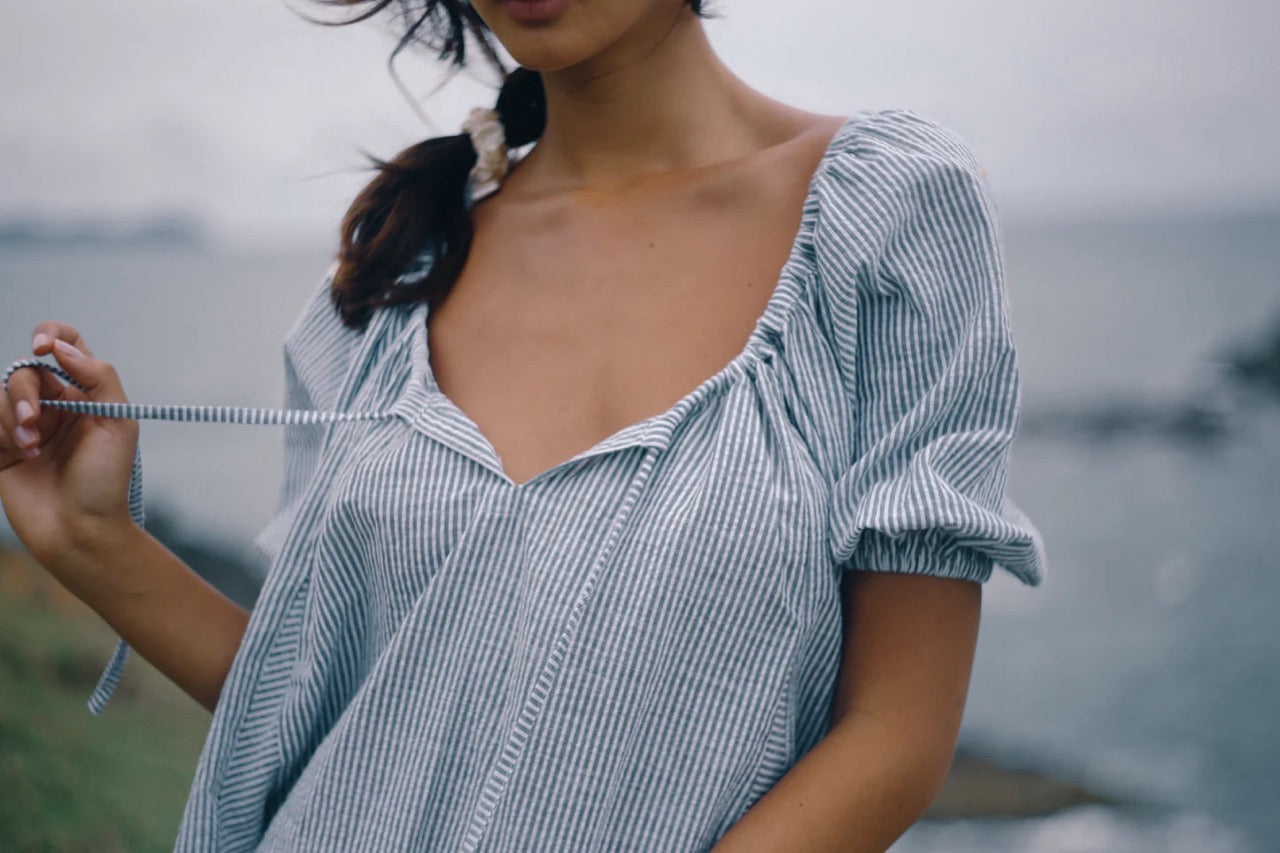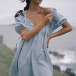 A soft, billowy dress ideal for those balmy Autumn days. Wear this dress everyday, or dress it up for evening drinks with friends. Made from a lovely blend of Organic Cotton and Linen in a baby Pink Gingham and features side pockets. Featuring a generous flowing fit, with adjustable drawstring at neckline to tighten or loosen the dress depending on how you want to wear it. Pull it in for a babydoll shape, or loosen it for an off-the-shoulder dress!