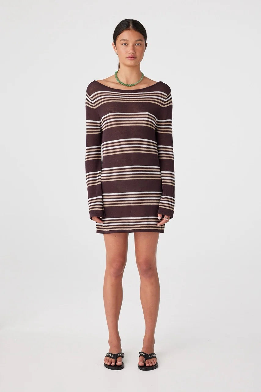 Nia Long Sleeve Mini Dress- Espresso Stripe
