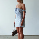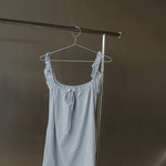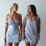 The Sophie dress is cut from 100% double-lined cotton for a softly structured feel that moves with you. Featuring a ruched tie-up neckline and gathered straps. This mini dress features a thin fabric tie to allow the dress to be cinched at the waist or worn loosely for a more relaxed fit.