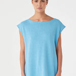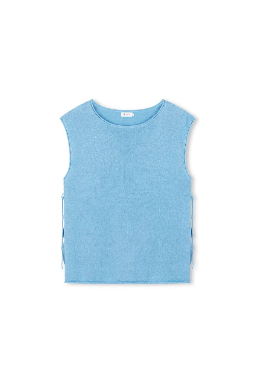 A lightweight, oversized tank with a breezy shape and side tie detailing. The rolled edges and textured weave bring softness and structure in equal measure.