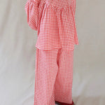 Drenched in chilli red gingham made from the softest cotton, this long-sleeve blouse offers a flowy fit for endless fun. Pair it with the matching All Day Gingham Pants for the coolest coord set!