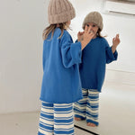 The Rolly Knit Jumper brings blueberry hues to your mini’s winter wardrobe. Knitted from the dreamiest pure cotton, it features our signature raw rolled hems and an easy, oversized fit designed to grow with your little one.