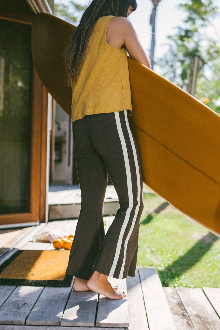 Form-fitting and silky soft, these bamboo flares are made for moving,
