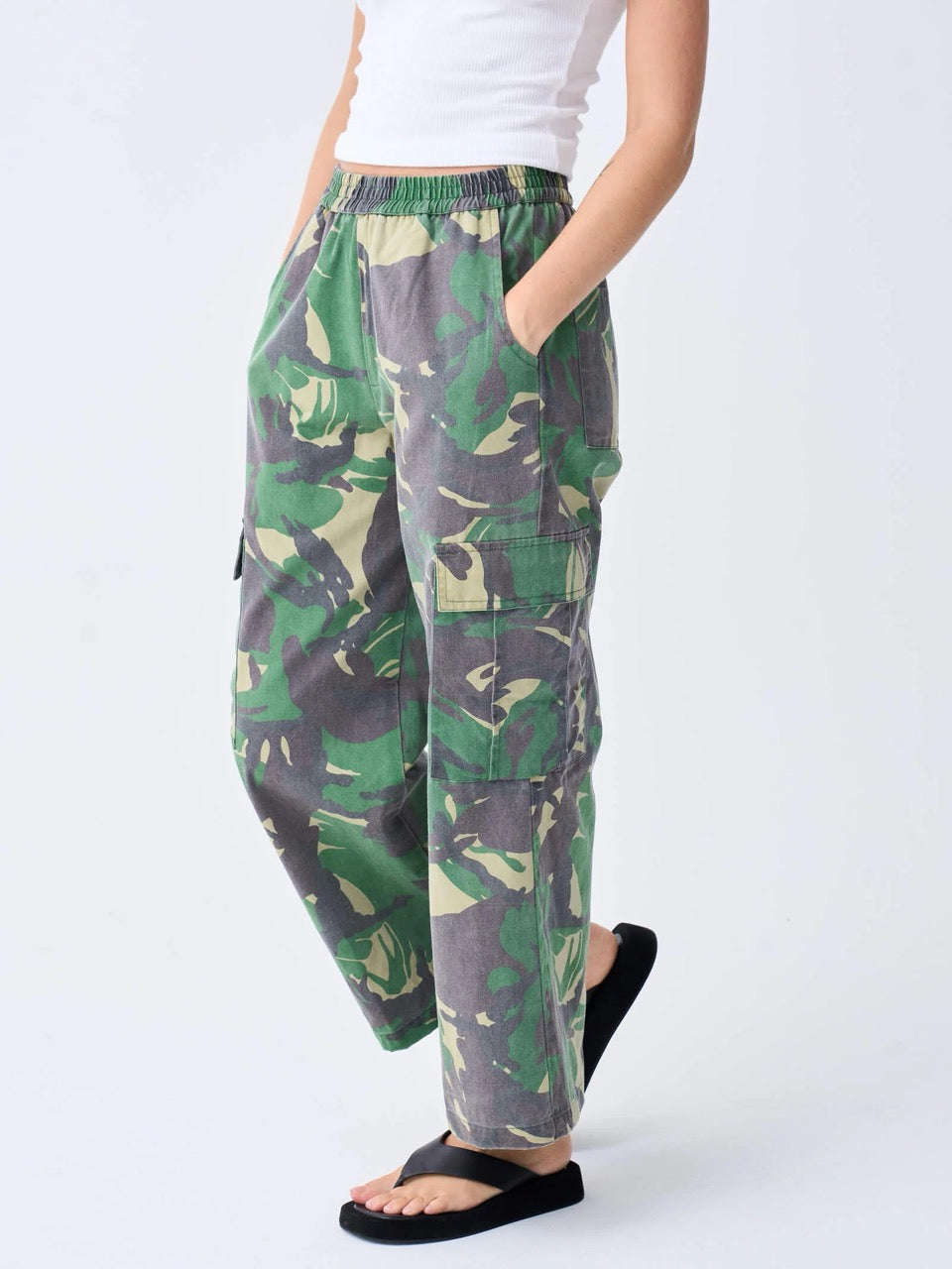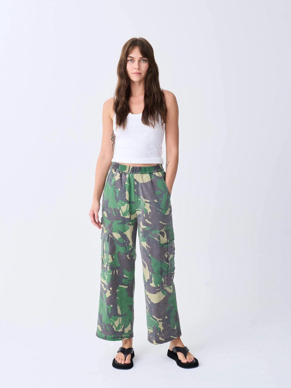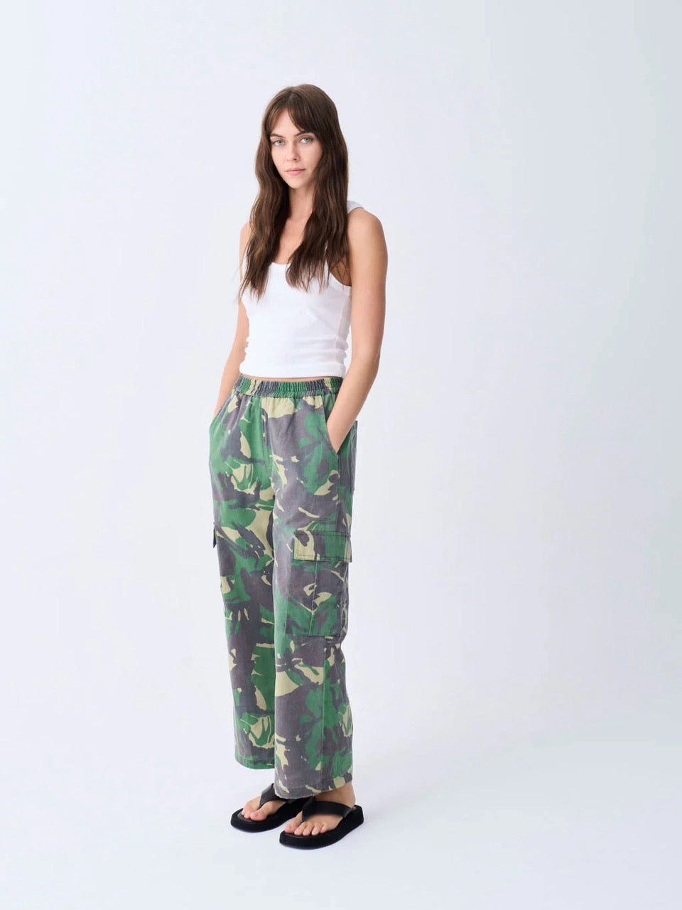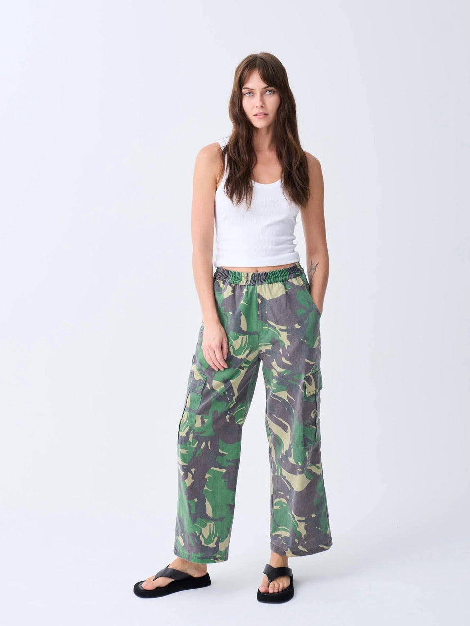 A army-camo cotton twill cargo pant which has carefully been stone washed for a softer and washed look..