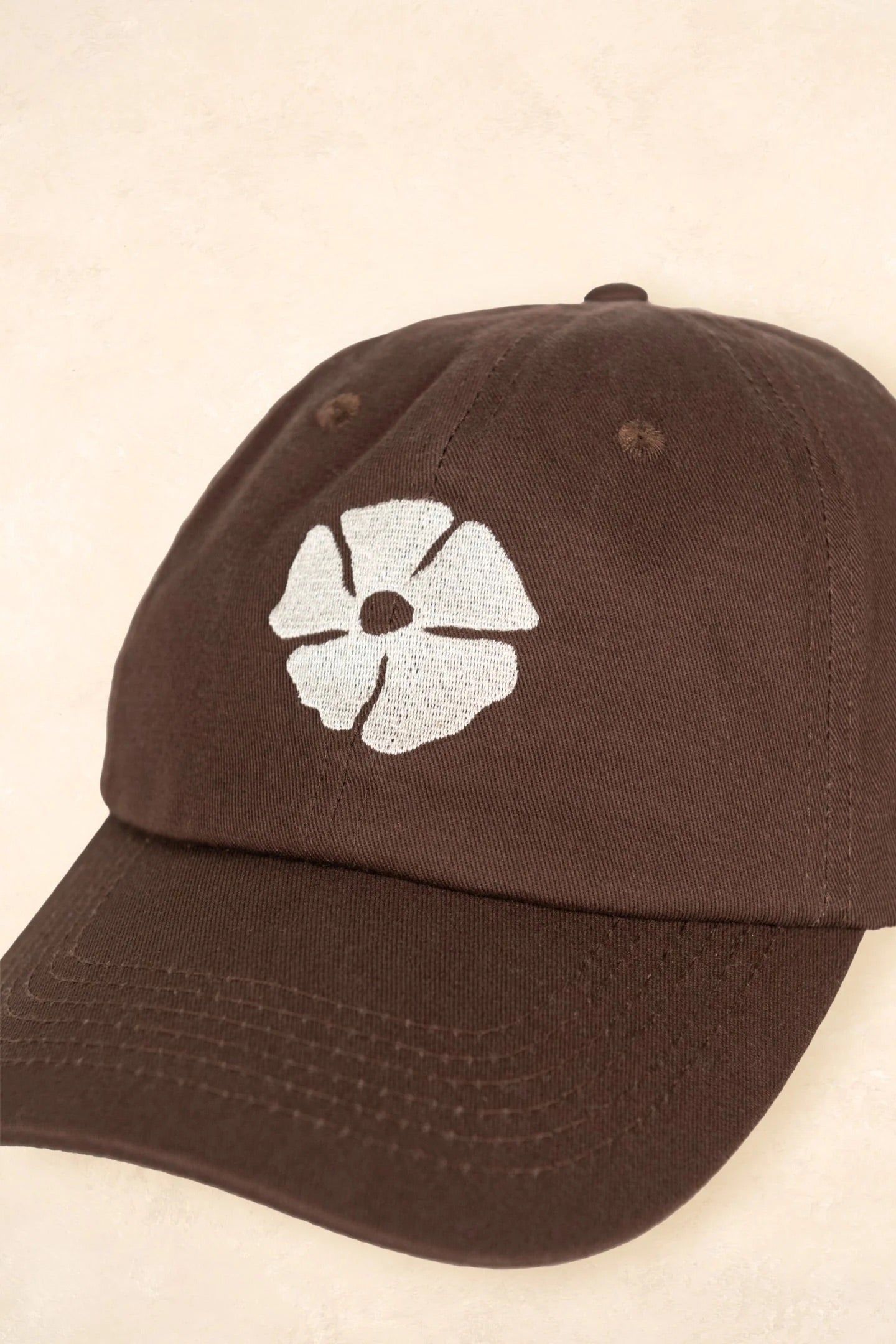 Embroidered with our delicate fleur motif in soft oat at the front, and a tonal Kiin logo at the back that subtly blends into the chocolate base. Finished with brushed gold hardware and a fully adjustable strap for a flexible, secure fit.
