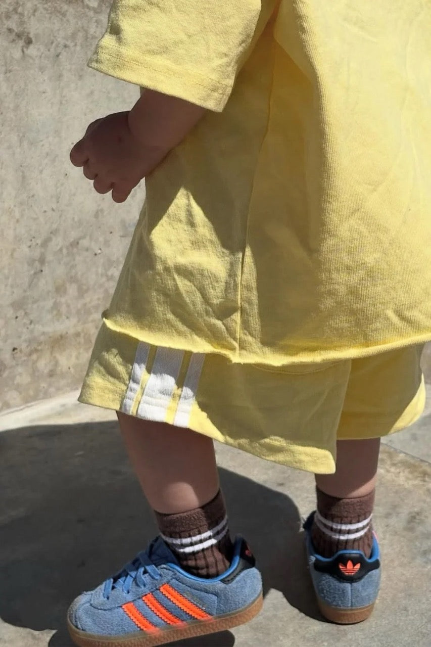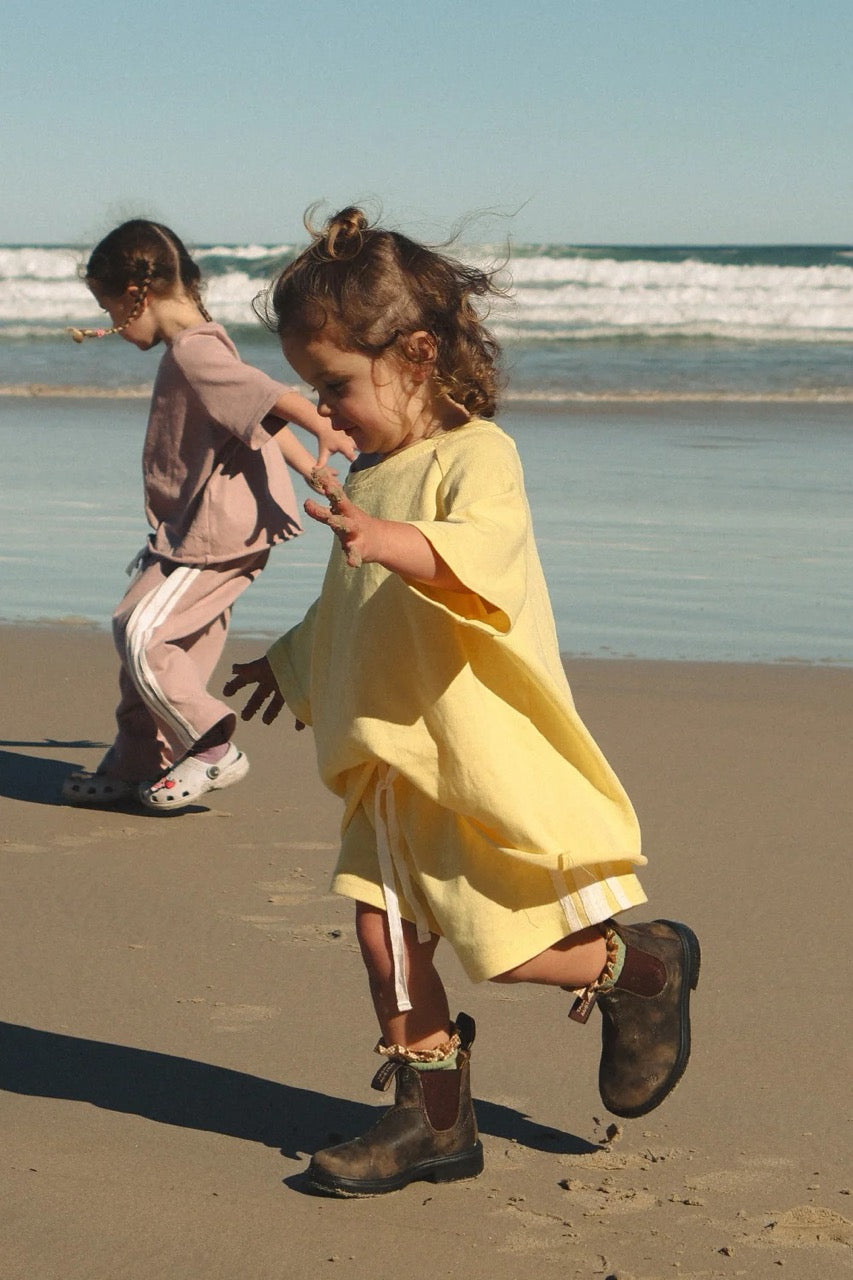 Cut from a premium cotton/linen French terry, it’s the fabric that does it all — thick enough to handle rough-and-tumble play, yet light enough for year-round wear.