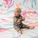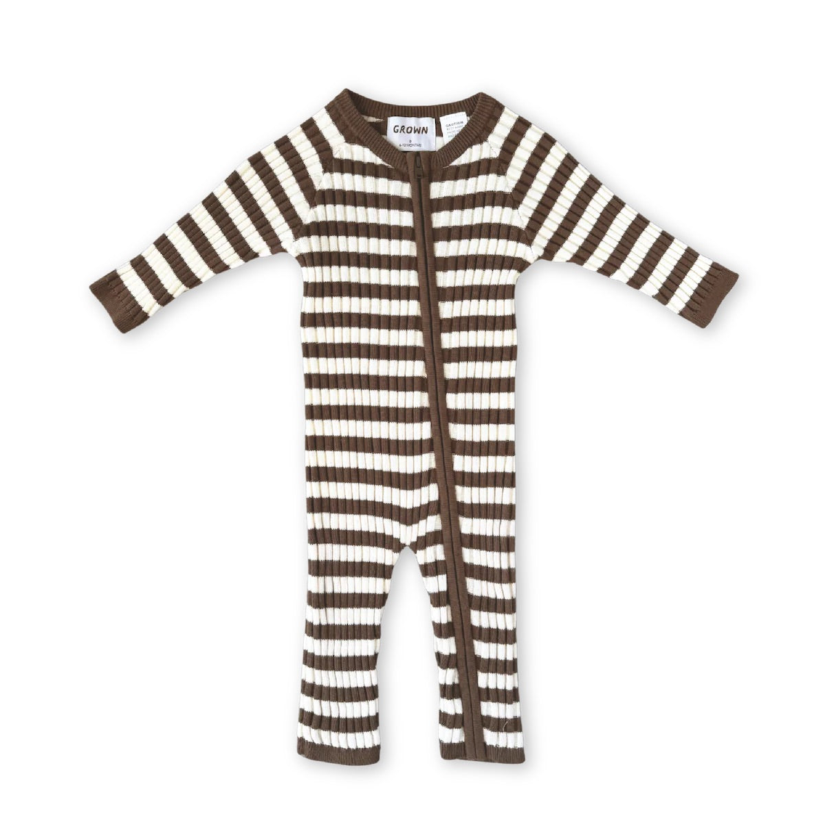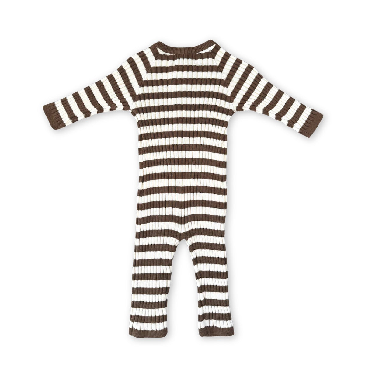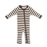 Organic Rib Stripe Knit Zipper Jumpsuit - Espresso & Milk