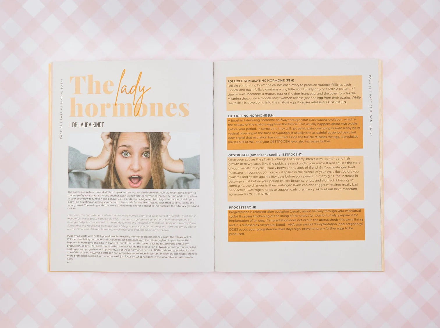 We haven’t stopped there, though. Blossom, Baby is so much more than your average puberty book. It’s full to the brim with goodness. We're talking input from professionals, poetry, fun, beautiful pages, quotes, interesting articles, ideas and health tips.