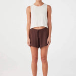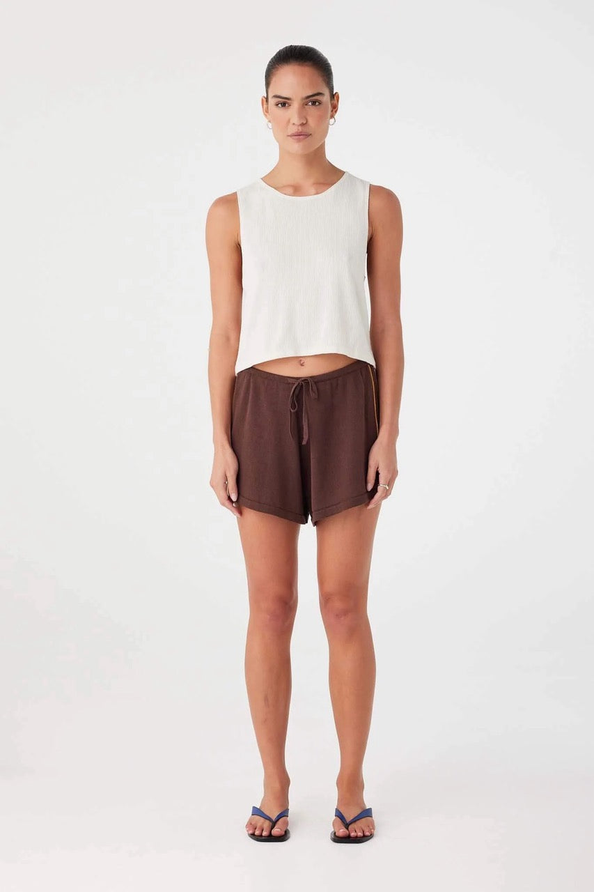 The Pippa Drawstring Short in Espresso is a relaxed-fit style crafted from a linen–organic cotton blend. Designed with contrast side panel detailing and an adjustable drawcord waist, it offers ease and natural breathability. Lightweight and versatile, it’s designed for warm-weather dressing or paired with the Pippa Tee for a coordinated set.