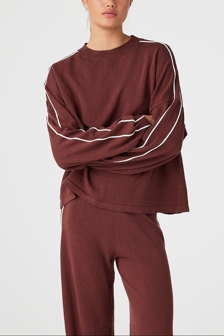 Pippa Long Sleeve Tee - Raison + Cream