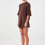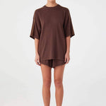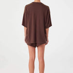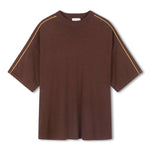 By ArccaThe Pippa Oversized Tee in Espresso is cut in an extra-relaxed silhouette with drop shoulders and contrast stripe detailing. Knitted from a linen–organic cotton blend, it drapes lightly for warm-weather ease and can be paired with the Pippa Short in Espresso for a coordinated set.