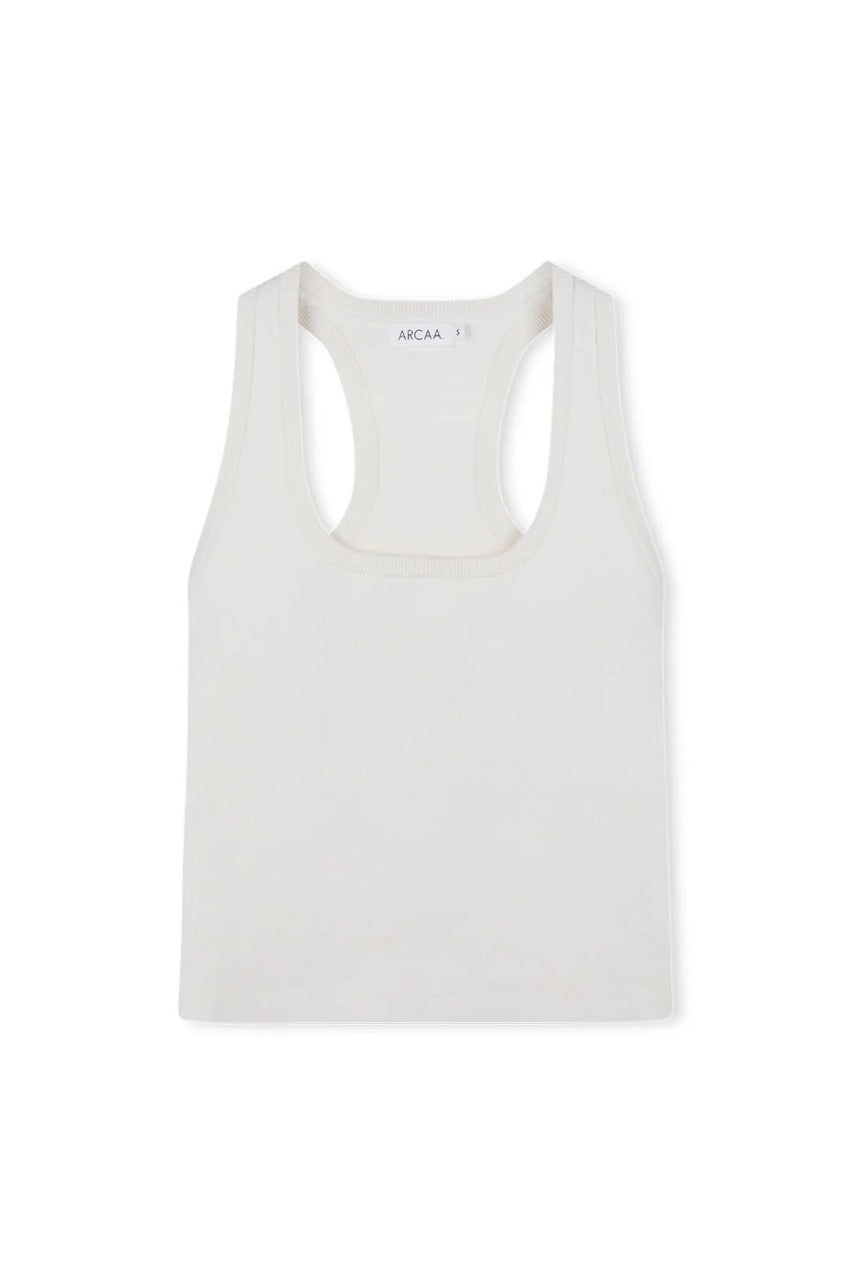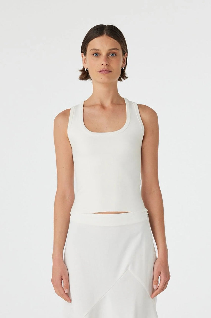 The Sable Top in Cream is a fitted knit tank crafted from 100% organic cotton.