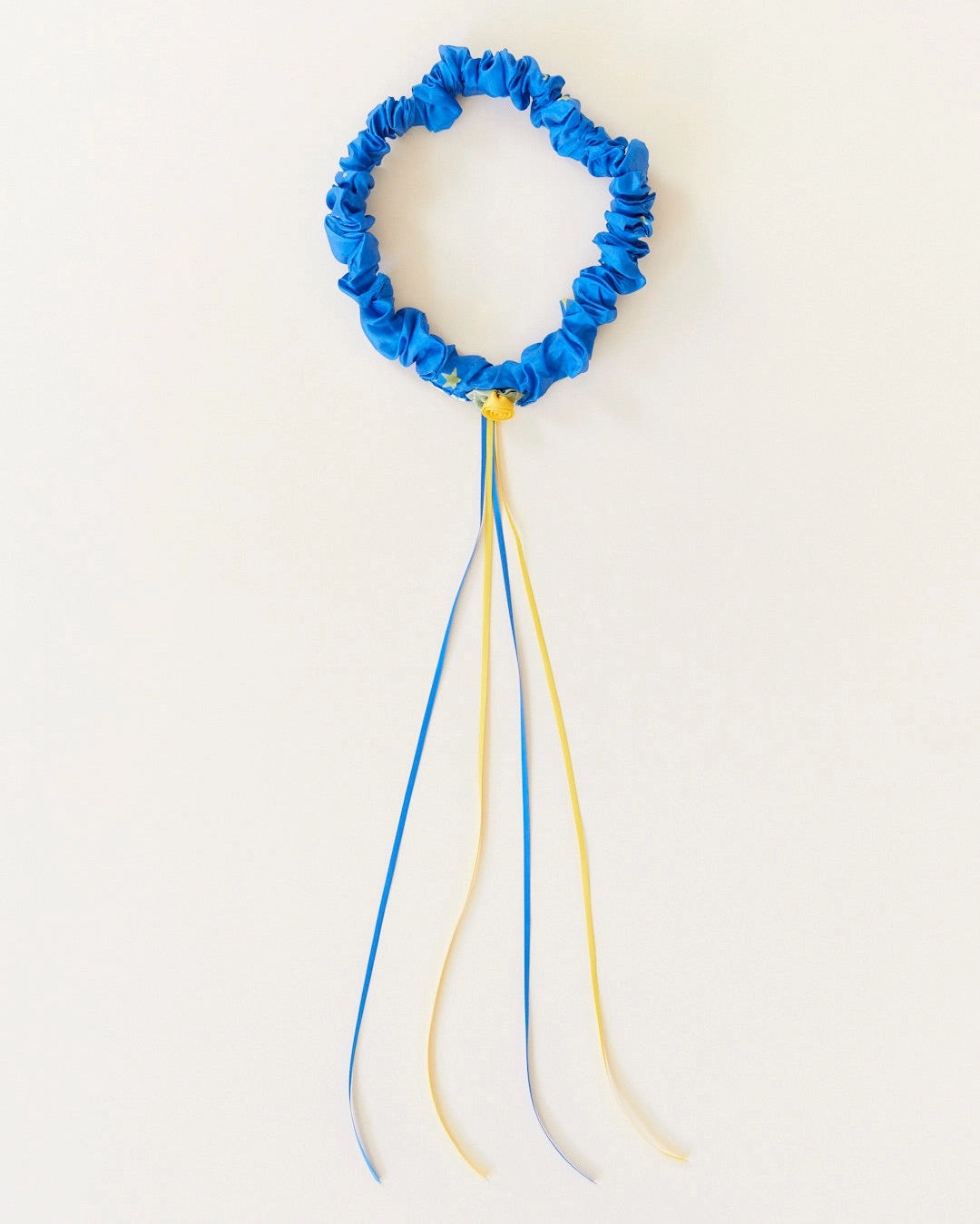 The Star Garland features a stretchy elastic band (18 - 28-inch diameter), wrapped in 100% silk, hand-painted, and silkscreened in our Star pattern. Fits comfortably on even the most sensitive little ones.